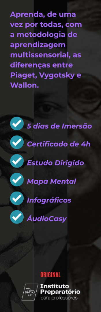 Banner lateral do produto. Segue a descrição do conteúdo: Aprenda, de uma vez por todas, as diferenças entre Piaget, Vygotsky e Wallon