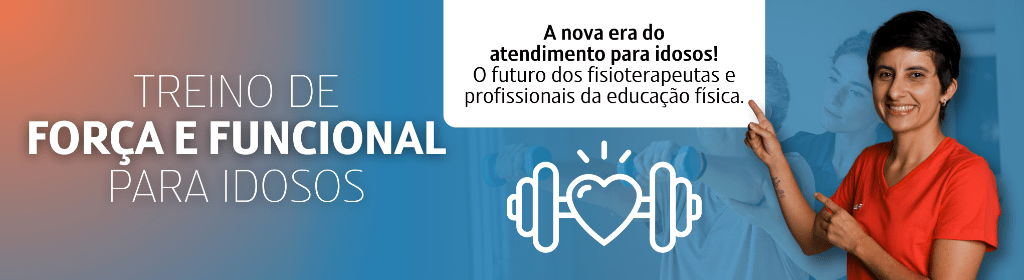 Banner superior do produto. Segue a descrição do conteúdo: CURSO ONLINE – Treino de Força e Funcional para Idosos
