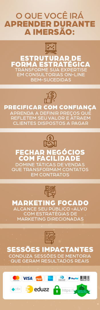 Banner lateral do produto. Segue a descrição do conteúdo: Um passo à passo para você desenvolver às habilidades necessárias para faturar até 10 mil reais com Consultorias e Mentorias no formato on-line.