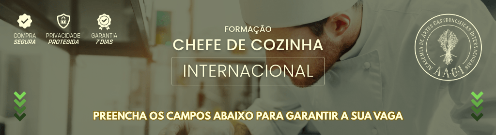 Reunindo toda a experiência dessa equipe, a AAGI criou o Chefe de Cozinha Internacional. Uma proposta diferenciada de ensino, com 15 capítulos que incluem todas as disciplinas essenciais para quem sonha em trabalhar como chef de cozinha ou desfrutar do maravilhoso hobby que é a Gastronomia.