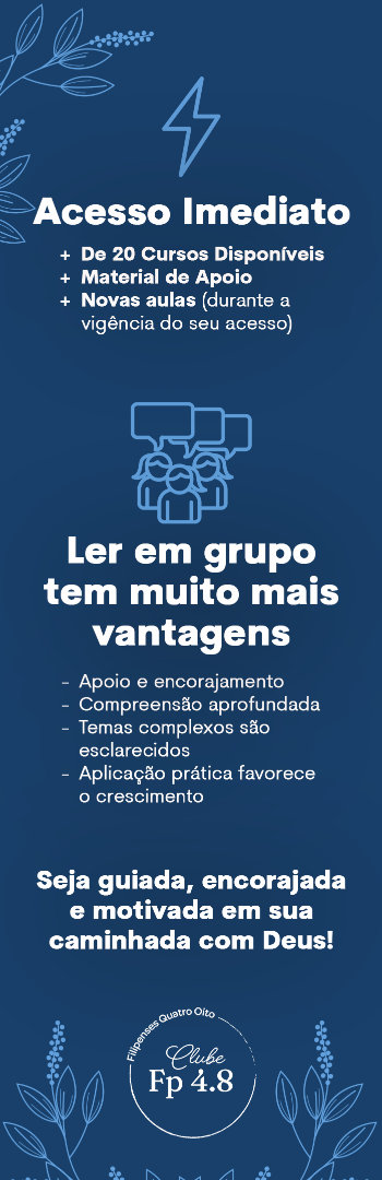 Banner lateral do produto. Segue a descrição do conteúdo: O Clube Fp4.8 é um clube por assinatura para mulheres cristãs de todas as idades, que desejam crescer em conhecimento e maturidade espiritual por meio de excelentes leituras cristãs, aulas de aprofundamento e muito conteúdo extra.