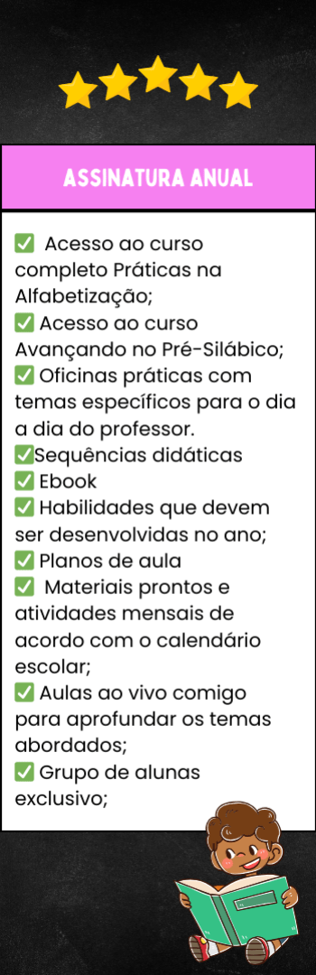 Aqui, você encontra não apenas conhecimento, mas também suporte e inspiração para superar os desafios da alfabetização, garantindo uma aprendizagem significativa e transformadora para seus alunos. Ao se juntar à comunidade, você estará em constante evolução, lado a lado com outros educadores comprometidos em proporcionar uma educação de excelência.