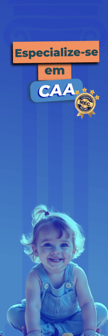 Banner lateral do produto. Segue a descrição do conteúdo: A pós-graduação em Comunicação Aumentativa e Alternativa (CAA) é voltada para profissionais que desejam aprofundar seus conhecimentos e práticas na promoção de alternativas de comunicação para pessoas com dificuldades severas de fala ou escrita. Esse curso capacita os alunos a desenvolverem abordagens inclusivas e personalizadas, ampliando o alcance de suas intervenções e promovendo uma comunicação mais eficaz e acessível para seus clientes.