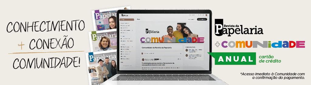 Receba edições bimestrais e impressas da Revista da Papelaria e acesse imediatamente a Comunidade com: