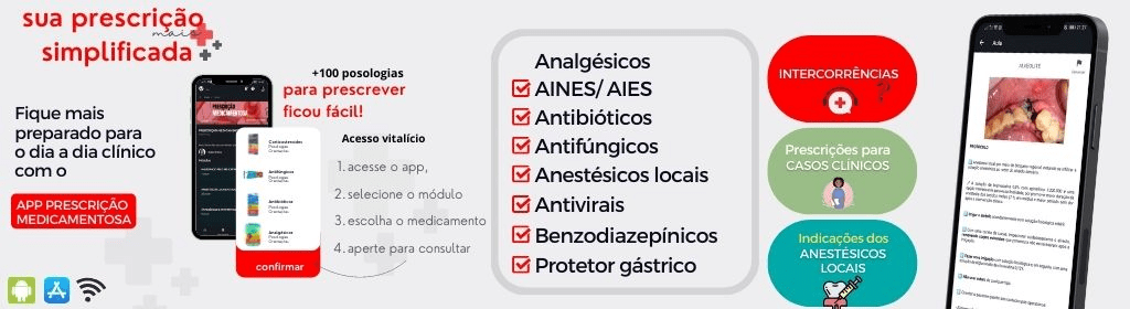 Banner superior do produto. Segue a descrição do conteúdo: Você tem dificuldade em prescrever? Na odontologia, o cirurgião-dentista se depara com inúmeras situações: infecções, dor, inflamação, ansiedade, medo, agitação, inquietude, entre outros.