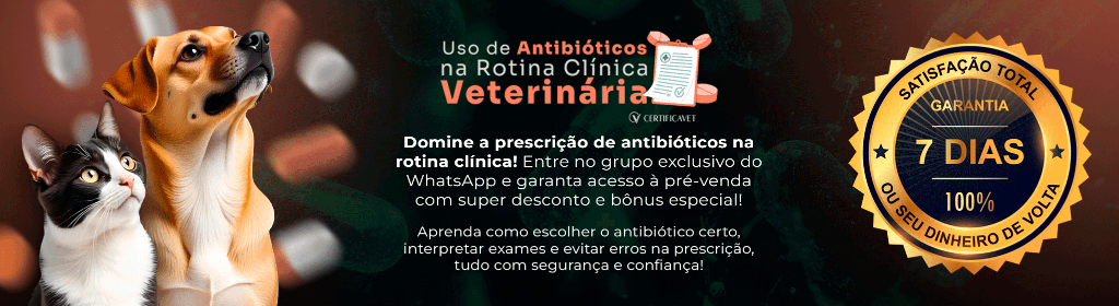 O Curso de Imersão: Uso de Antibióticos na Rotina Clínica Veterinária é um curso digital já gravado, desenvolvido para veterinários e estudantes que desejam dominar a prescrição de antibióticos de forma prática e segura. Com 10 horas de conteúdo direto o curso é totalmente online, com acesso por 6 meses, suporte para tirar dúvidas diretamente com professores e certificado emitido automaticamente ao concluir. Preencha as lacunas que a faculdade deixou e transforme sua rotina clínica com um conhecimento essencial, atualizado e pronto para aplicar no dia a dia.
