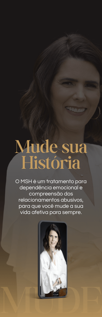 No Programa MUDE A SUA HISTÓRIA – MSH você passará por um processo terapêutico e será capaz de avaliar que tipo de relacionamentos você está vivendo ou viveu, conhecerá o perfil do parceiro abusivo, todos os tipos de manipulações usadas contra você, aprenderá como trabalhar a dependência emocional, compreenderá a razão de ter se conectado a esse tipo de parceiro e como sair desta relação para construir algo mais saudável e feliz. Esse conhecimento já libertou centenas de mulheres de relacionamentos tóxicos e fracassados e te capacitará para fazer o mesmo.