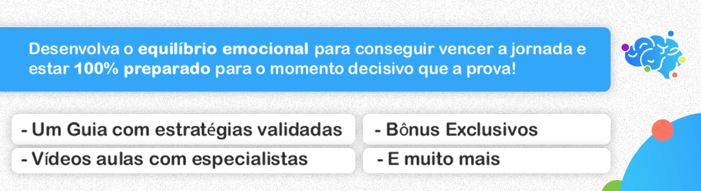 Banner superior do produto. Segue a descrição do conteúdo: Aprenda a governar suas emoções e desenvolver equilíbrio emocional para que consiga vencer a jornada e estar bem no momento decisivo da prova.