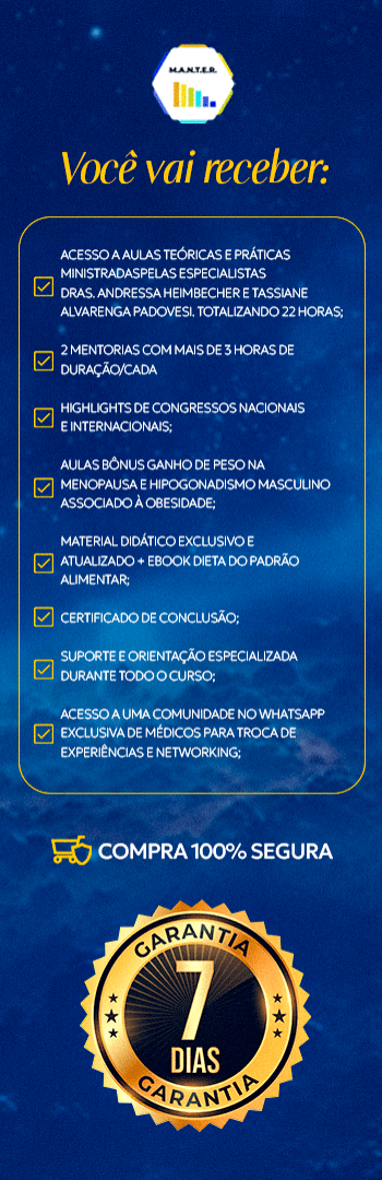 Banner lateral do produto. Segue a descrição do conteúdo: Programa de desenvolvimento e capacitação para tratar pacientes com diagnóstico de obesidade ou sobrepeso. Você irá aprender o método que Drª Andressa Heimbecher e Drª Tassiane Alvarenga desenvolveram para aumentar a qualidade no atendimento, acompanhamento e tratamento dos pacientes que chegam em seu consultório médico.