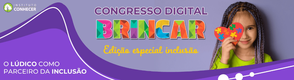 Banner superior do produto. Segue a descrição do conteúdo: O Congresso Brincar Digital abordará temas que abordam a área da inclusão para os profissionais que atuam nas creches, educação infantil e do 1º ao 5º ano do ensino fundamental.