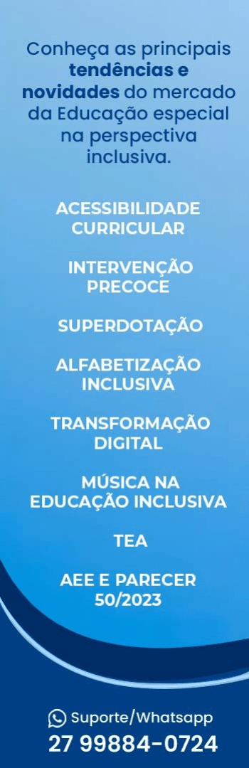 Banner lateral do produto. Segue a descrição do conteúdo: O Congresso Brincar Digital - Edição Especial Inclusão 2025 é um evento 100% digital que conecta educadores, profissionais da saúde, familiares e interessados no tema da educação inclusiva. Nosso objetivo é promover uma formação transformadora, acessível e repleta de boas práticas, metodologias e estratégias pedagógicas para fortalecer a inclusão.