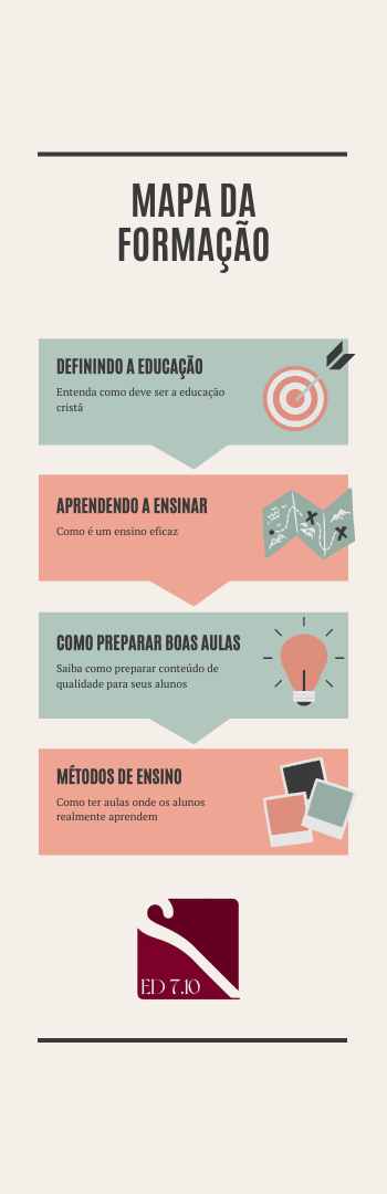 Banner lateral do produto. Segue a descrição do conteúdo: A formação em educação cristã oferece uma visão teórica e prática do ensino e estudo cristãos nos diversos ambientes eclesiásticos e paraeclesiásticos, como Escolas Bíblicas, seminários e institutos teológicos, pequenos grupos e etc.