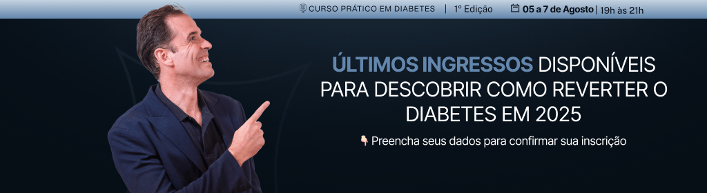 Banner superior do produto. Segue a descrição do conteúdo: 3 dias te ajudando a montar um plano de reversão do diabetes. Evento privado e online.